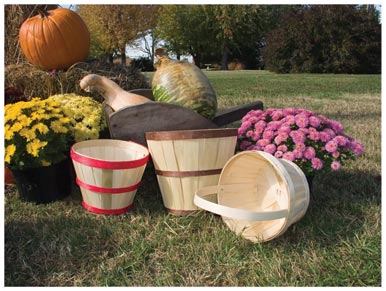 Hamper Flats are available with or without handle. Colors: natural, red with green band, and solid colors.